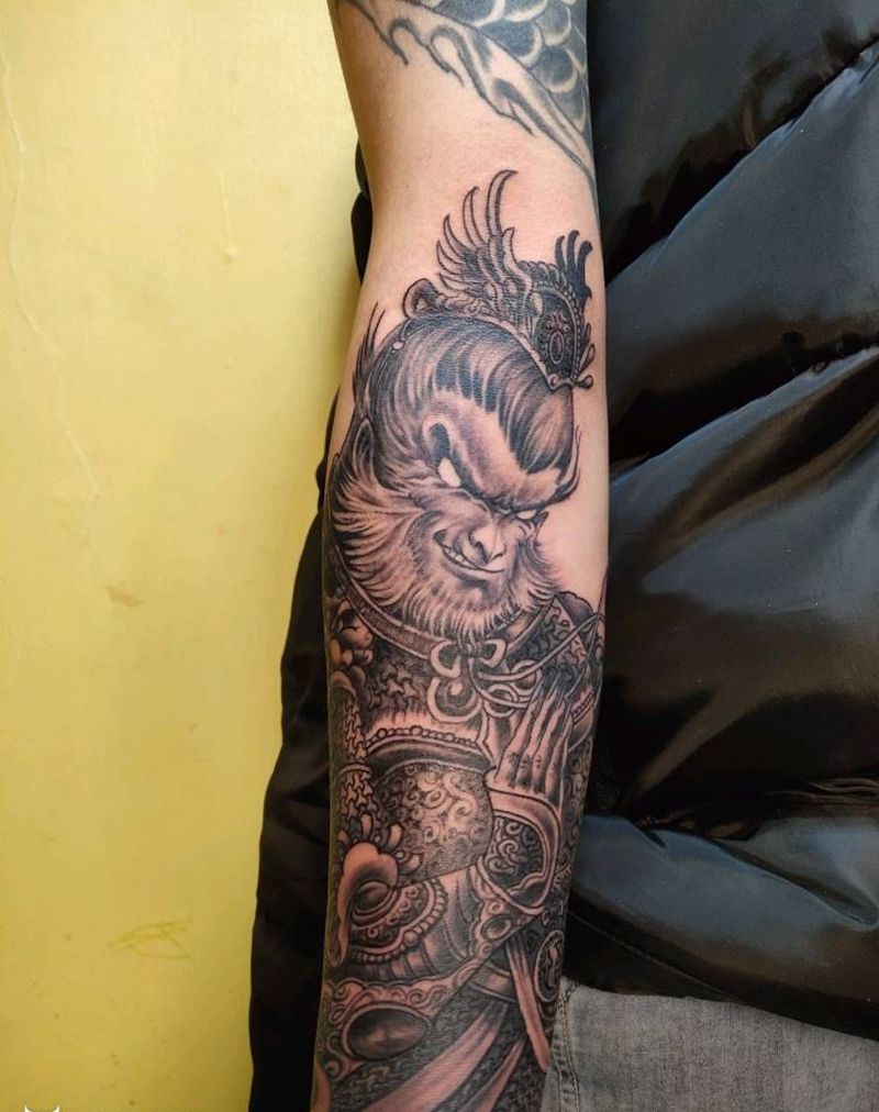 当前位置: 首页 >山西省太原市纹身店-太原翼龙刺青工作室纹身图案>悟空纹身图片_手臂新传统遮盖纹身图案