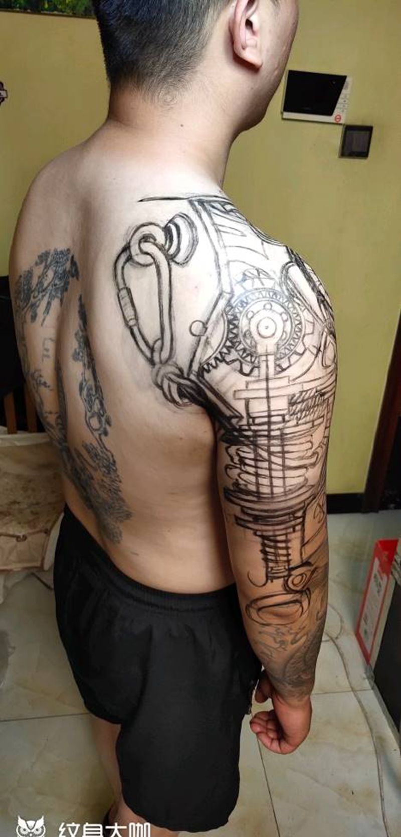 当前位置: 首页 >山西省太原市纹身店-太原翼龙刺青工作室纹身图案>未来战士9攀登者纹身图片_手臂新传统纹身图案