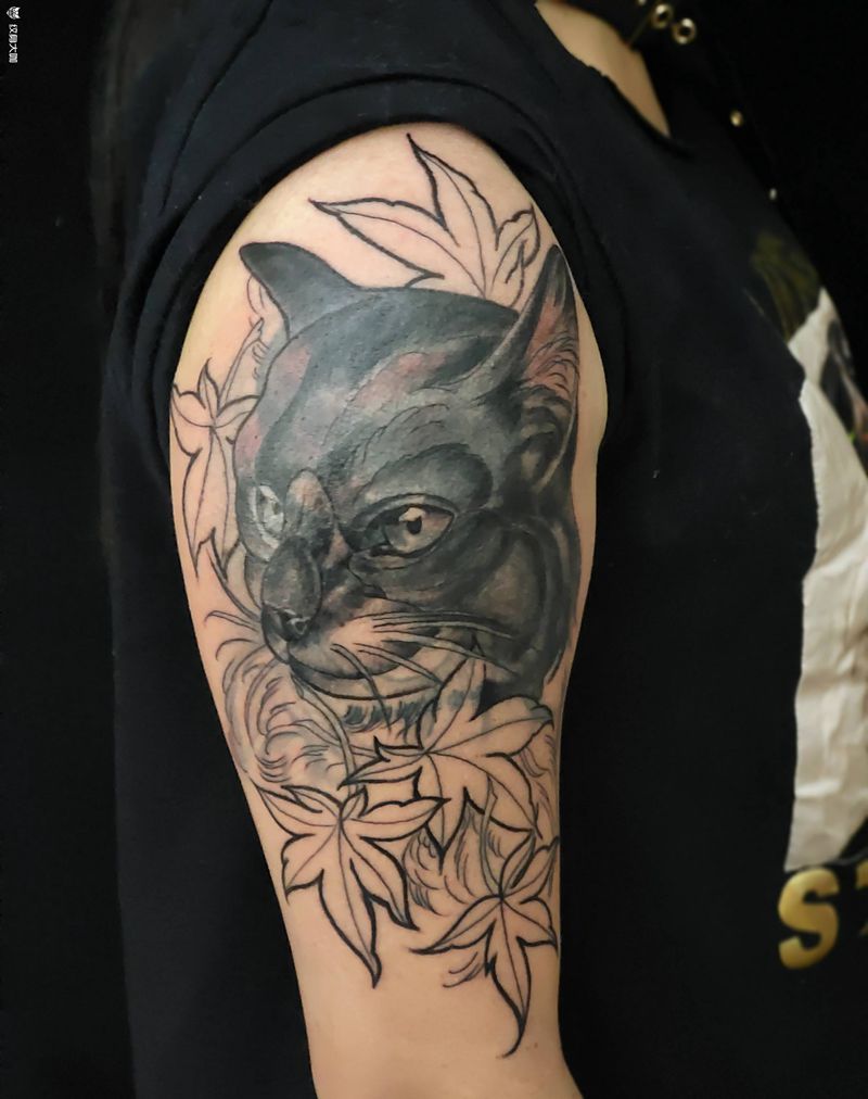 遮盖肖像纹身图片_手臂New SchoolOld School遮盖猫纹身图案