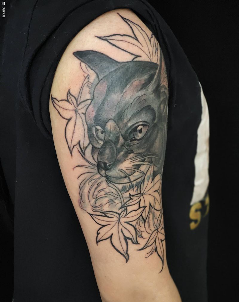 遮盖肖像纹身图片_手臂New SchoolOld School遮盖猫纹身图案