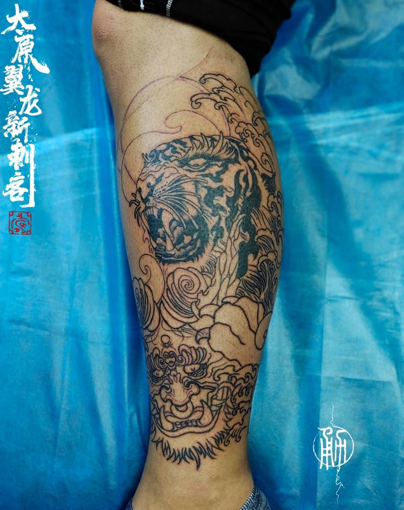 当前位置: 首页 >山西省太原市纹身店-太原翼龙刺青工作室纹身图案>包小腿彩色未完成纹身图片_腿部新传统点刺纹身图案