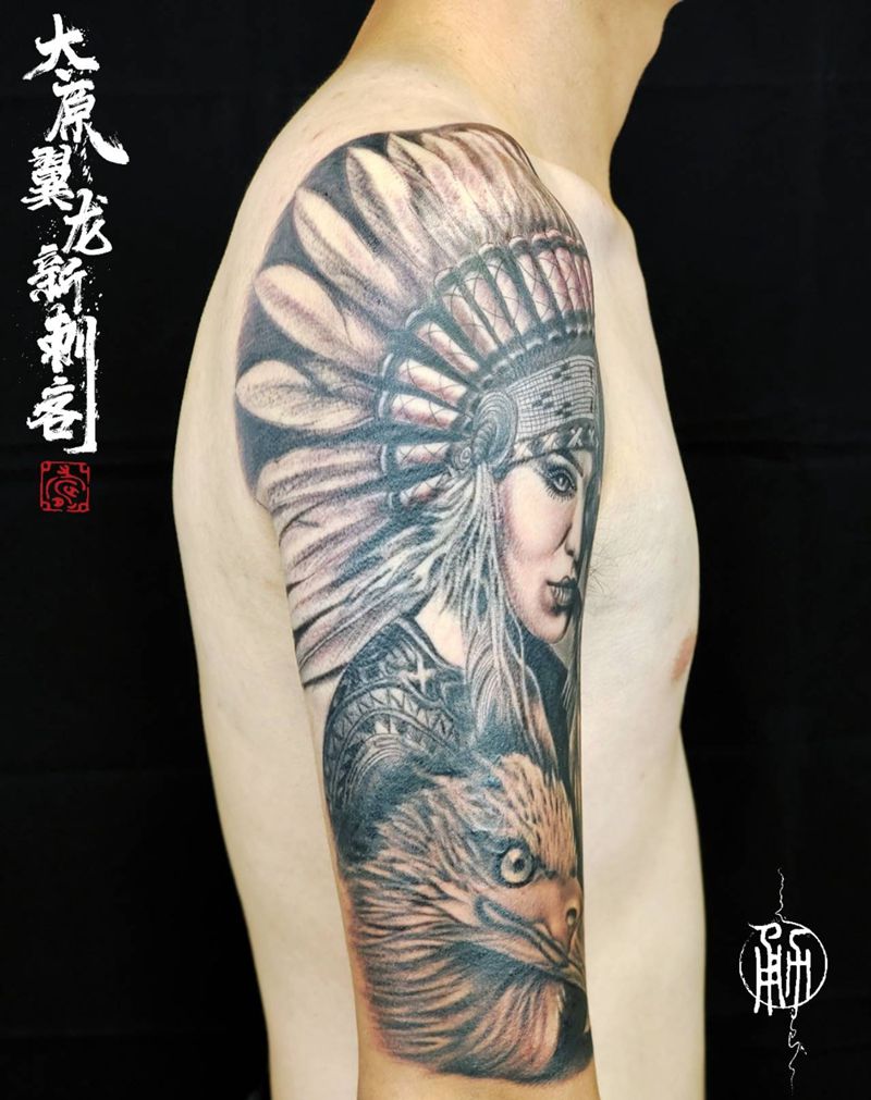 • 纹身吧推荐的披肩图腾半胛纹身图案作品展示