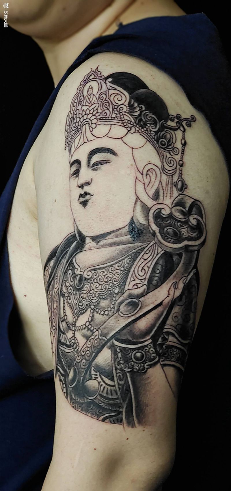 普贤菩萨花臂未完成纹身图片_手臂新传统纹身图案