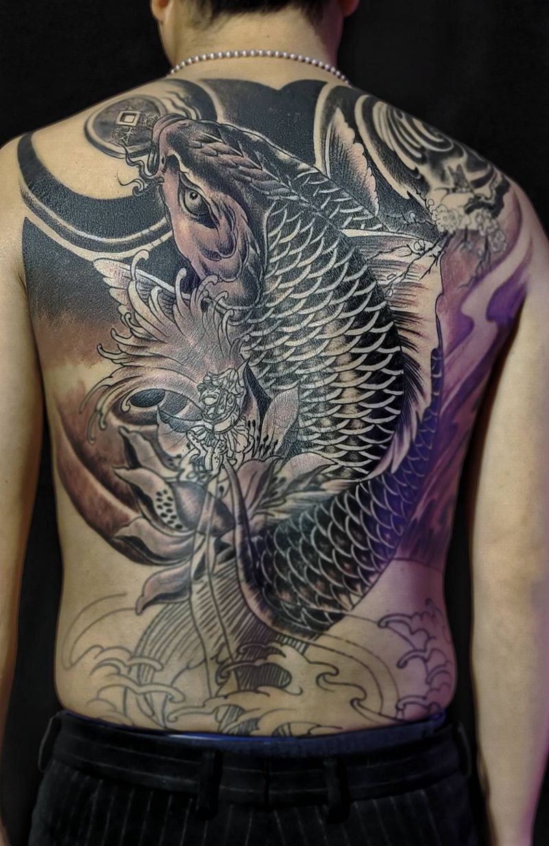 黑灰满背纹身图案