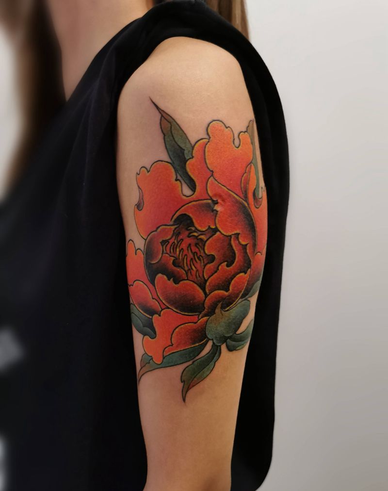 当前位置: 首页 >山西省阳泉市纹身店-问鼎刺客纹身纹身图案>牡丹花纹身图片_手臂新传统纹身图案
