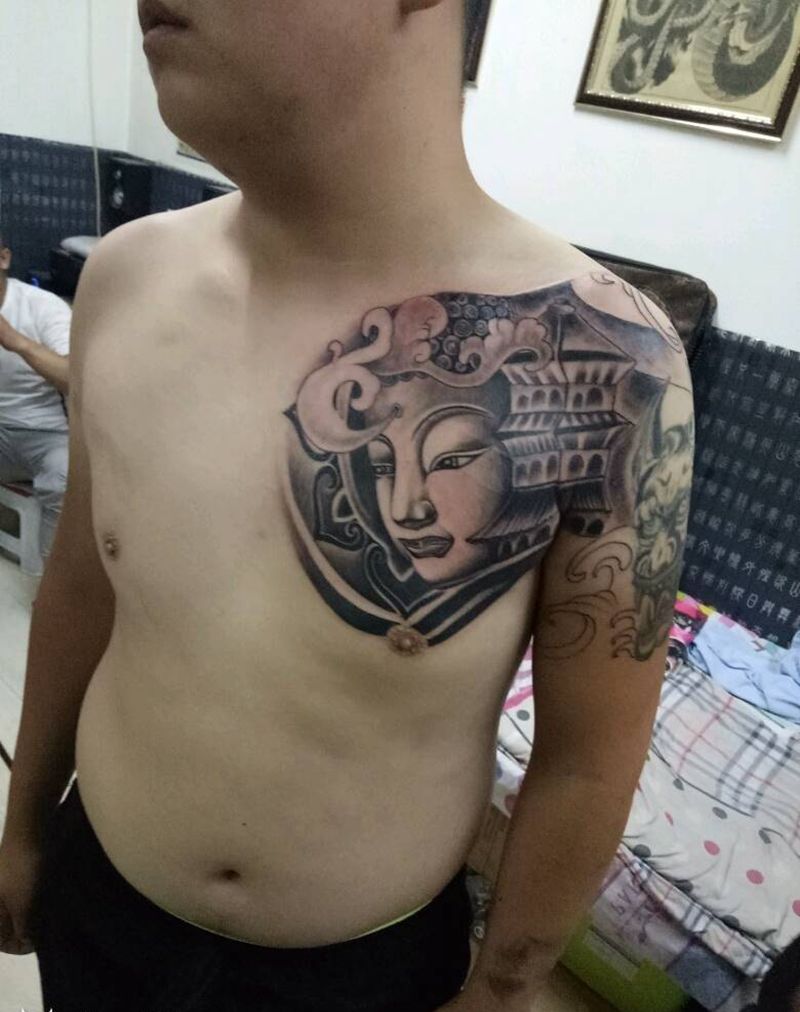 • 男性大花胸_42张优秀的男性大花胸纹身图案图片