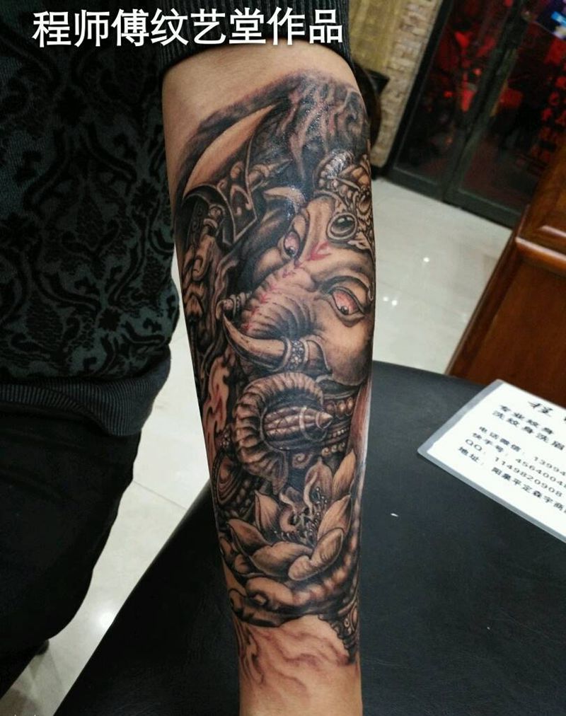 当前位置: 首页 >山西省阳泉市纹身店-程师傅纹艺堂纹身图案>象神纹身图片