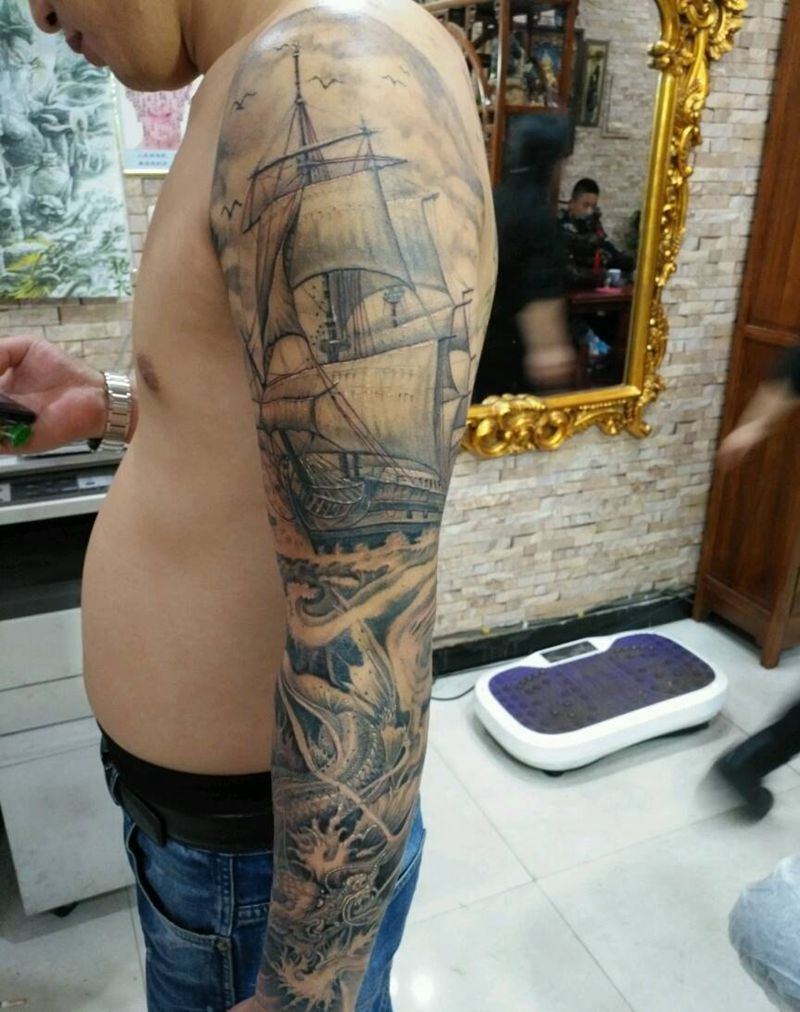 当前位置: 首页 >山西省阳泉市纹身店-程师傅纹艺堂纹身图案>帆船花臂纹身图片