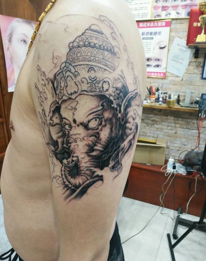 当前位置: 首页 >山西省阳泉市纹身店-程师傅纹艺堂纹身图案>象神纹身图片