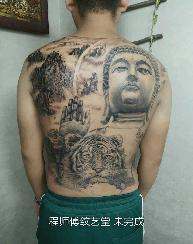 当前位置: 首页 >山西省阳泉市纹身店-程师傅纹艺堂纹身图案>满背佛未完成纹身图片
