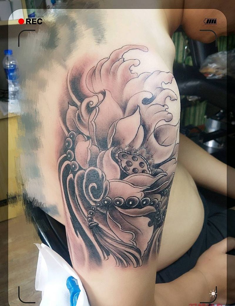 一组15张莲花纹身手