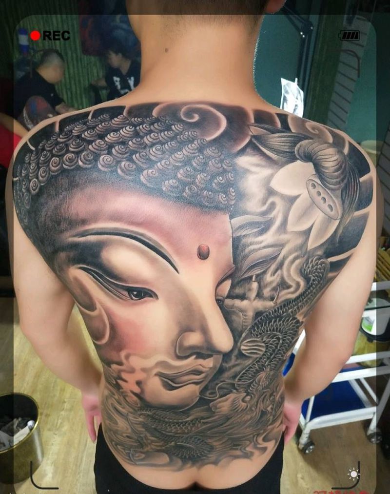 满背大日如来纹身图片_背部老传统纹身图案