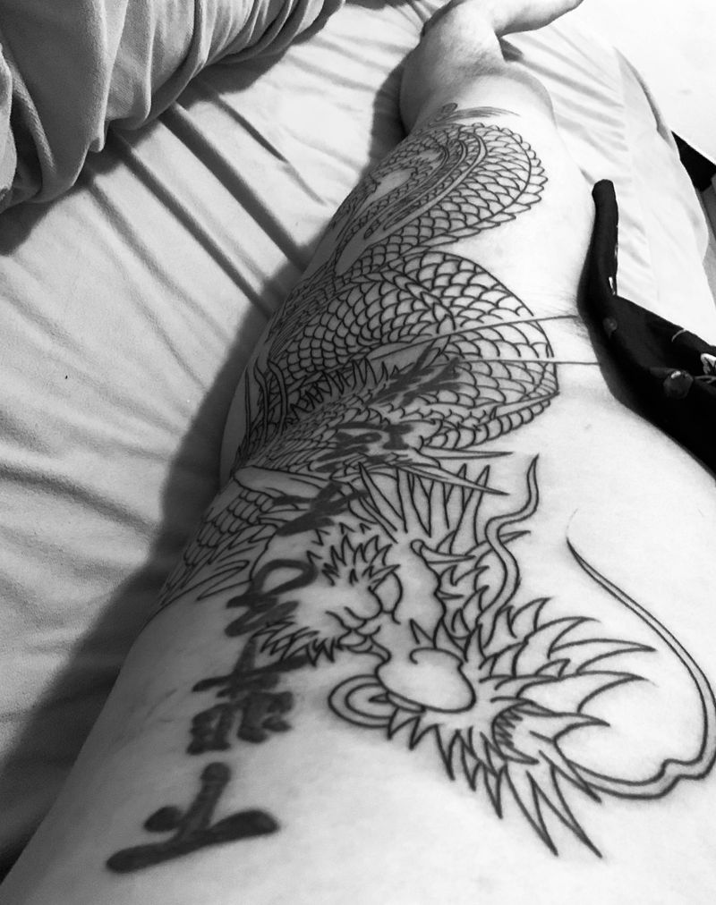 • T网红王老大花腿龙纹身图片_腿部新传统纹身图案