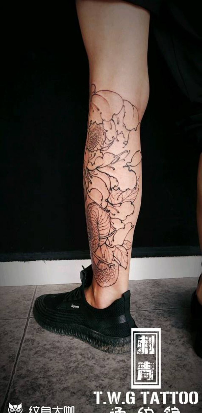 • T网红王老大花腿龙纹身图片_腿部新传统纹身图案