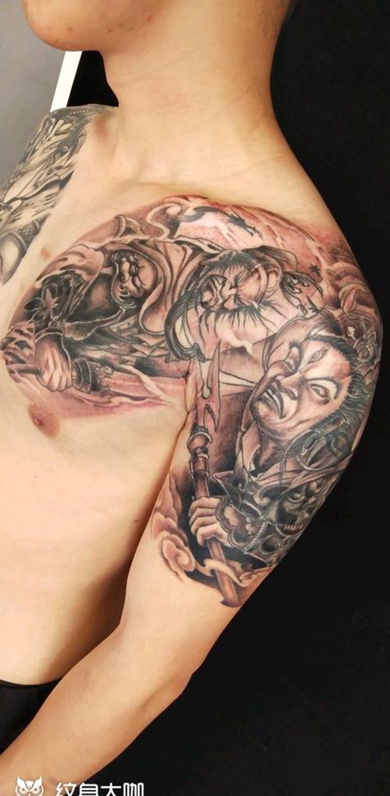 当前位置: 首页 >山西省晋中市纹身店-通纹馆•私人纹身工作室纹身图案>半胛纹身图片_胸部手臂新传统纹身图案