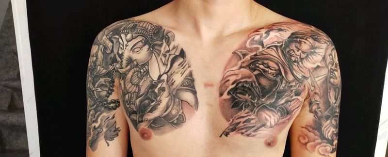 当前位置: 首页 >山西省晋中市纹身店-通纹馆•私人纹身工作室纹身图案>半胛纹身图片_胸部手臂新传统纹身图案