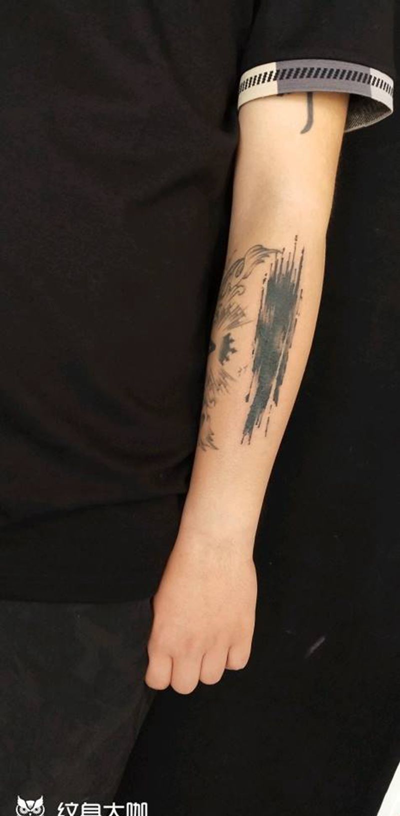 遮盖纹身图片_手臂水墨笔刷纹身图案
