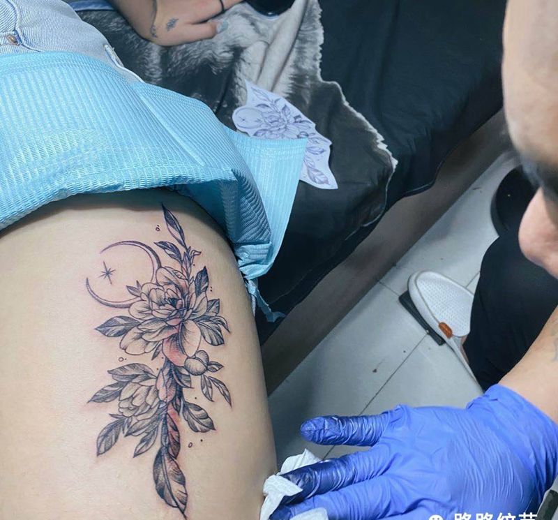 素花遮盖疤痕纹身图片_腿部纹身图案
