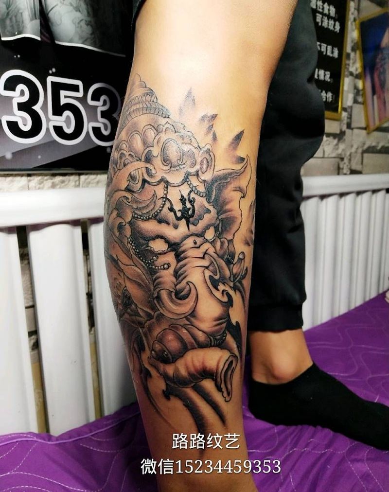 当前位置: 首页 >山西省晋中市纹身店-路路纹艺纹身图案>象神纹身图片_腿部纹身图案