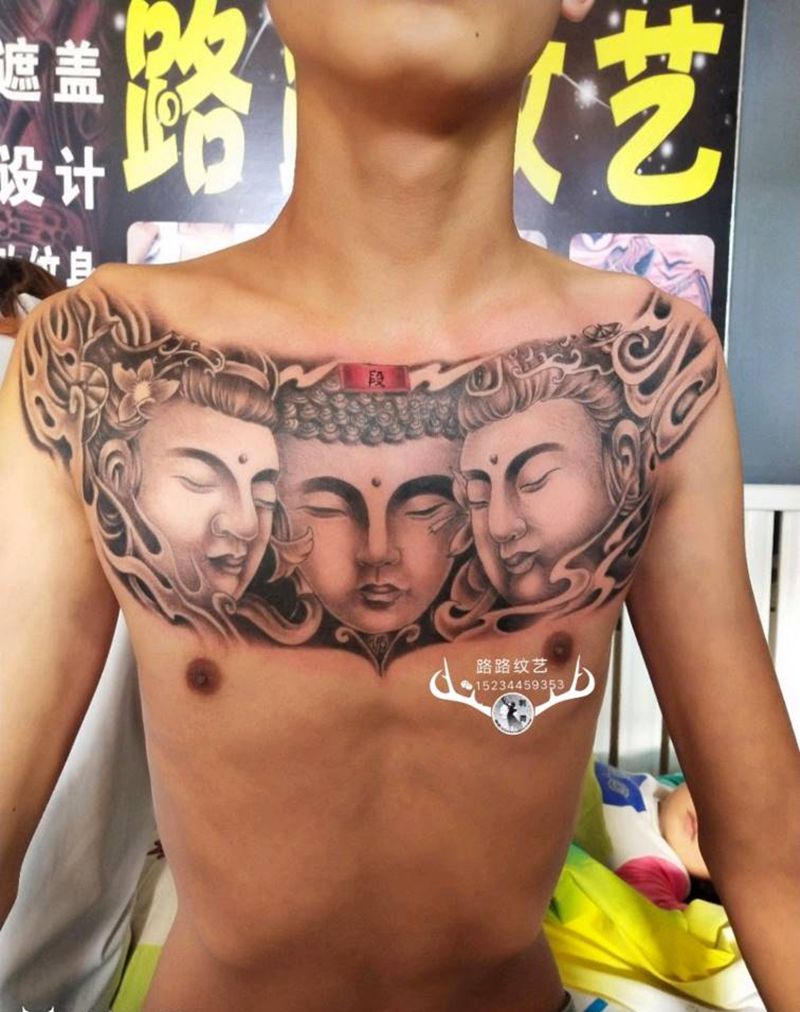当前位置: 首页 >山西省晋中市纹身店-路路纹艺纹身图案>三面佛纹身图片_胸部纹身图案