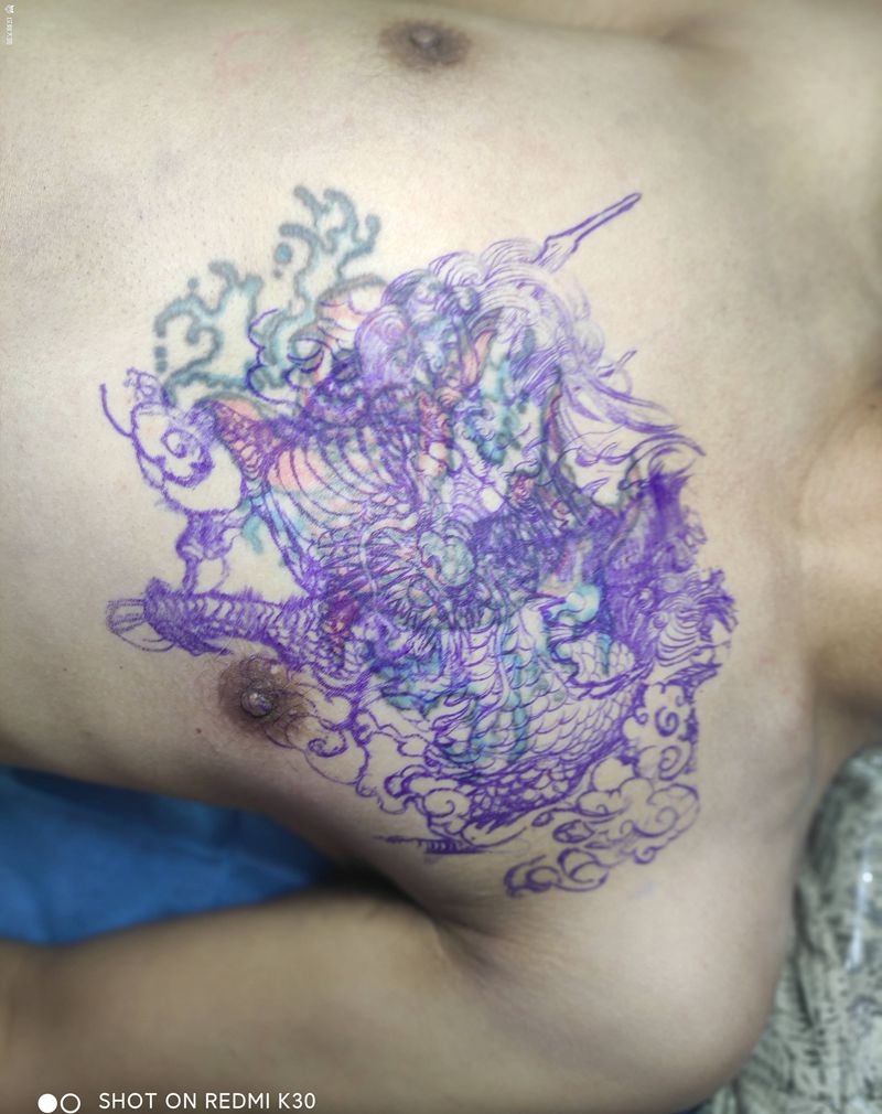 当前位置: 首页 >山西省忻州市纹身店-酷玩刺青纹身图案>麒麟遮盖鲤鱼纹身图片_胸部纹身图案