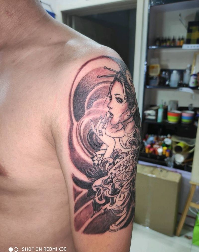 当前位置: 首页 >山西省忻州市纹身店-酷玩刺青纹身图案>艺妓纹身图片_手臂新传统纹身图案