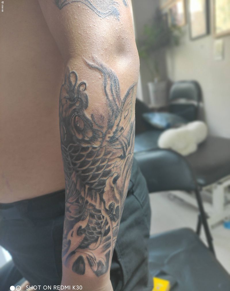 当前位置: 首页 >山西省忻州市纹身店-酷玩刺青纹身图案>鲤鱼纹身图片_手臂新传统纹身图案
