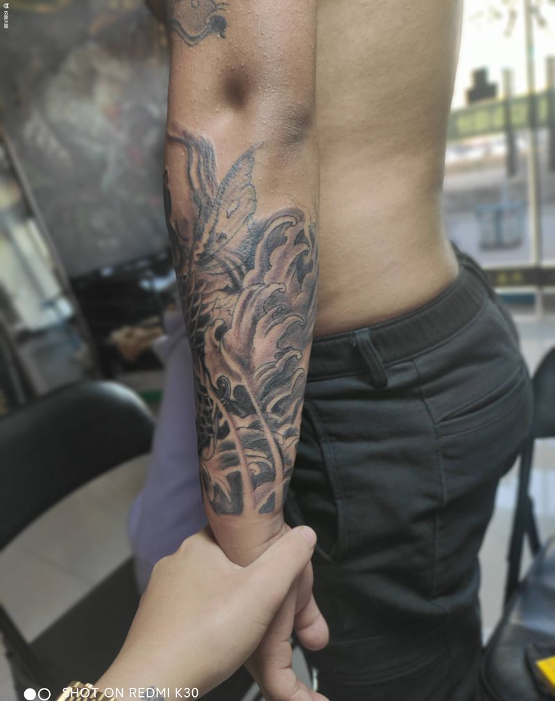 当前位置: 首页 >山西省忻州市纹身店-酷玩刺青纹身图案>鲤鱼纹身图片_手臂新传统纹身图案