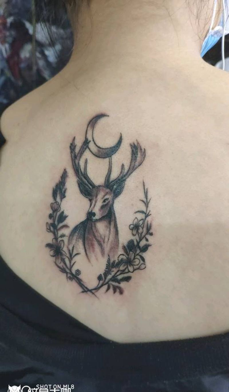 小鹿纹身图片_背部纹身图案