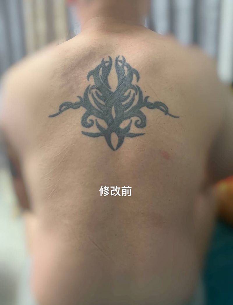 黑灰满背纹身图案
