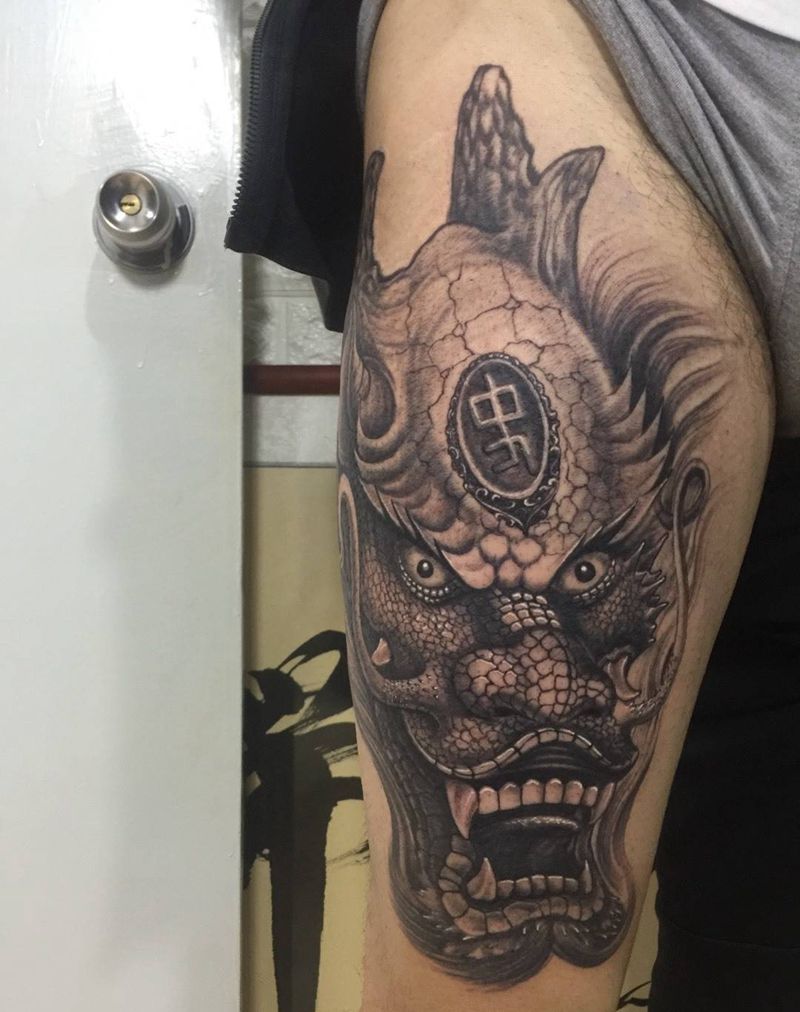 • T网红王老大花腿龙纹身图片_腿部新传统纹身图案