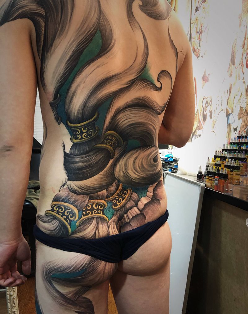 青丘帝君纹身图片_背部腿部纹身图案