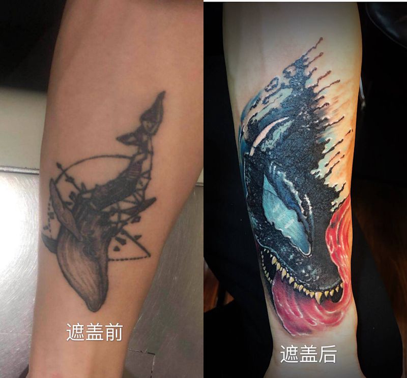 • T网红王老大花腿龙纹身图片_腿部新传统纹身图案