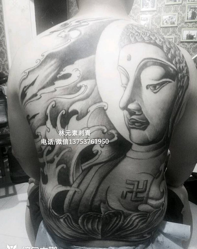 黑灰满背纹身图案
