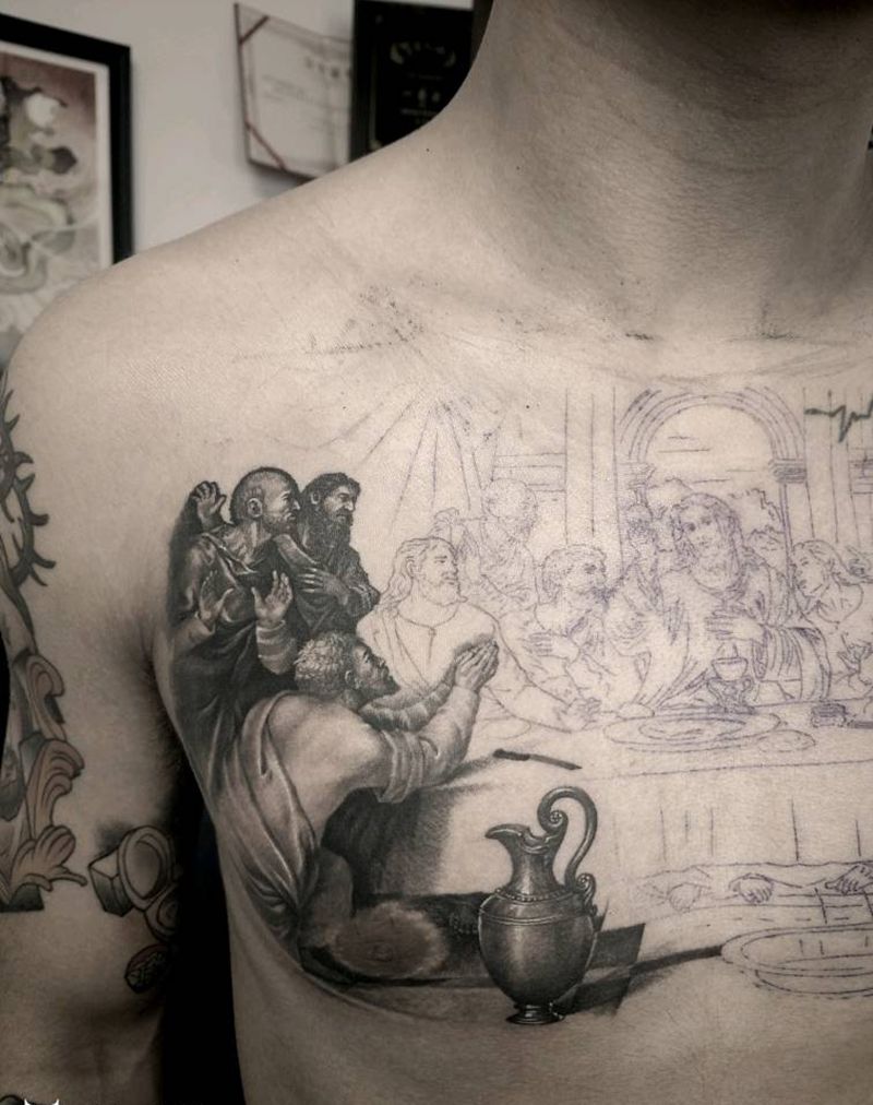 最后的晚餐纹身图片_胸部欧美写实纹身图案