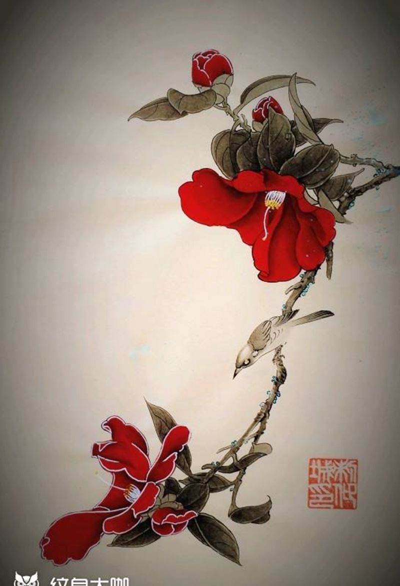 一组15张莲花纹身手