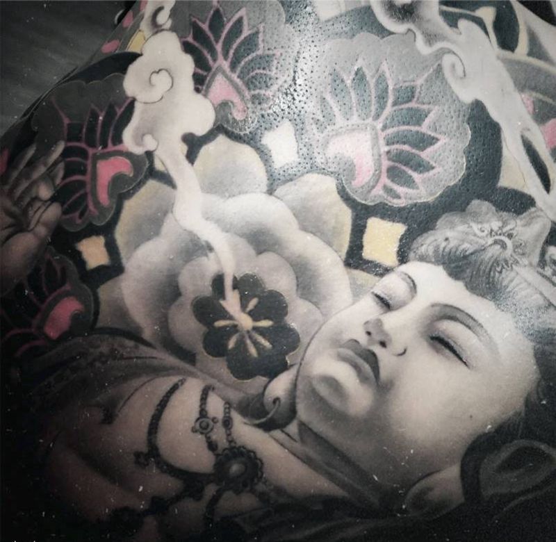 黑灰满背纹身图案