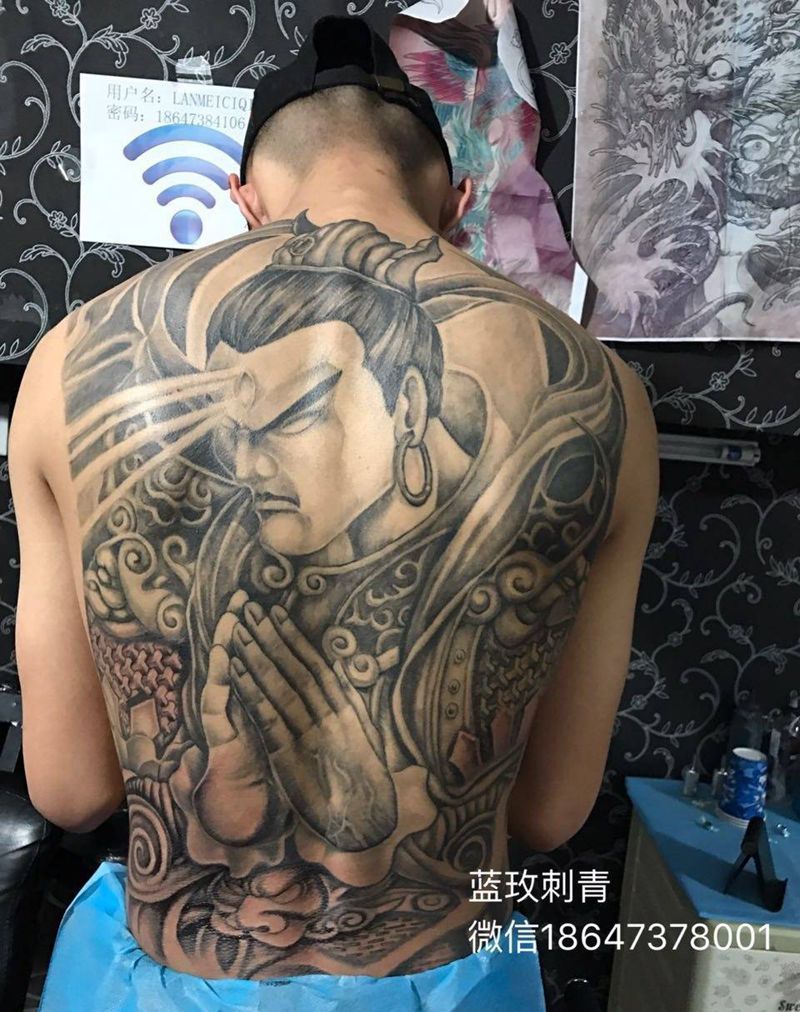 当前位置: 首页 >内蒙古呼和浩特市纹身店-蓝玫刺青纹身图案>满背二郎神纹身图片