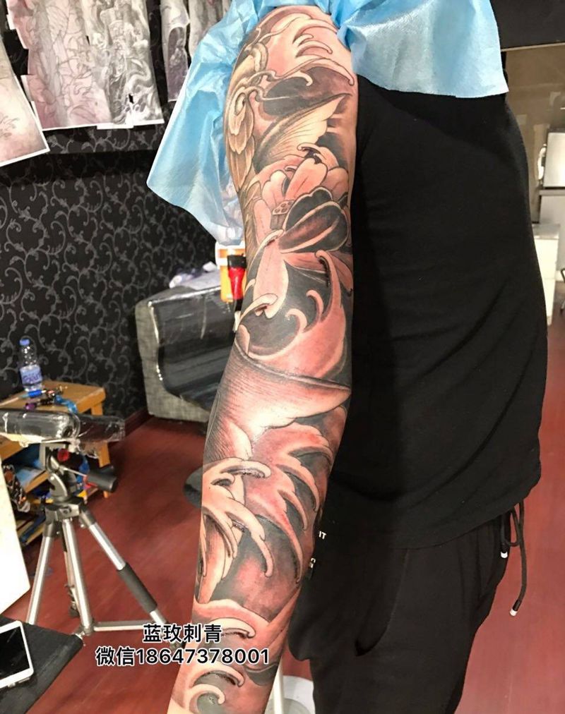当前位置: 首页 >内蒙古呼和浩特市纹身店-蓝玫刺青纹身图案>鱼花臂纹身图片