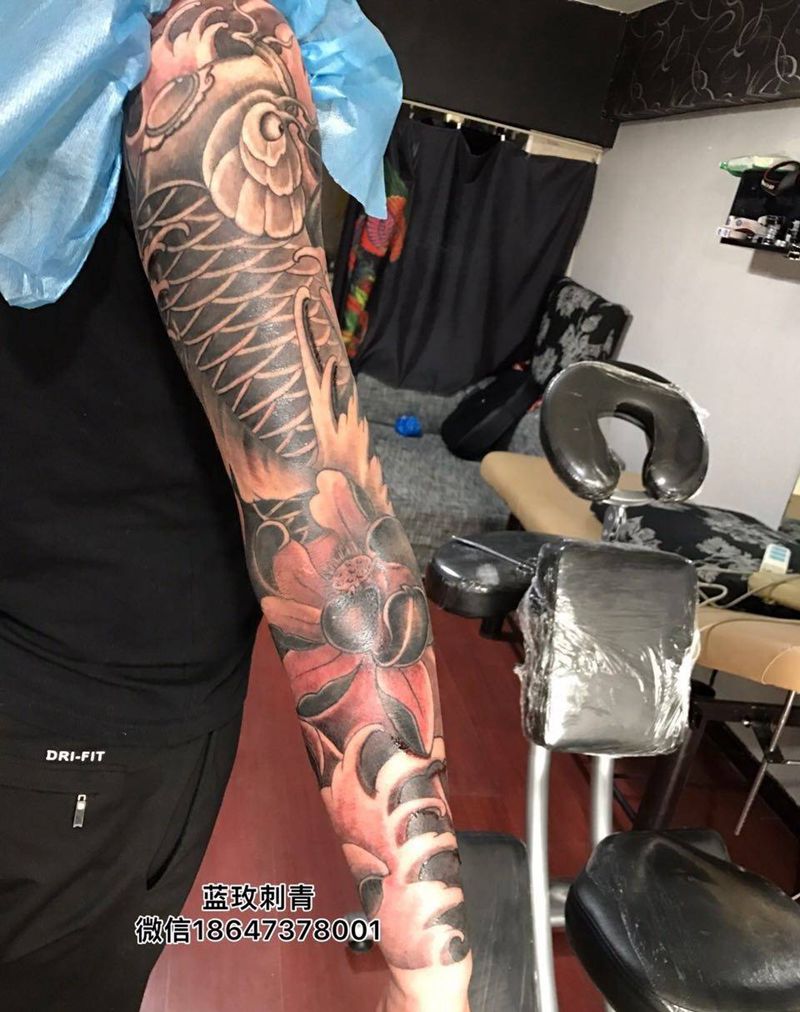 当前位置: 首页 >内蒙古呼和浩特市纹身店-蓝玫刺青纹身图案>鱼花臂纹身图片
