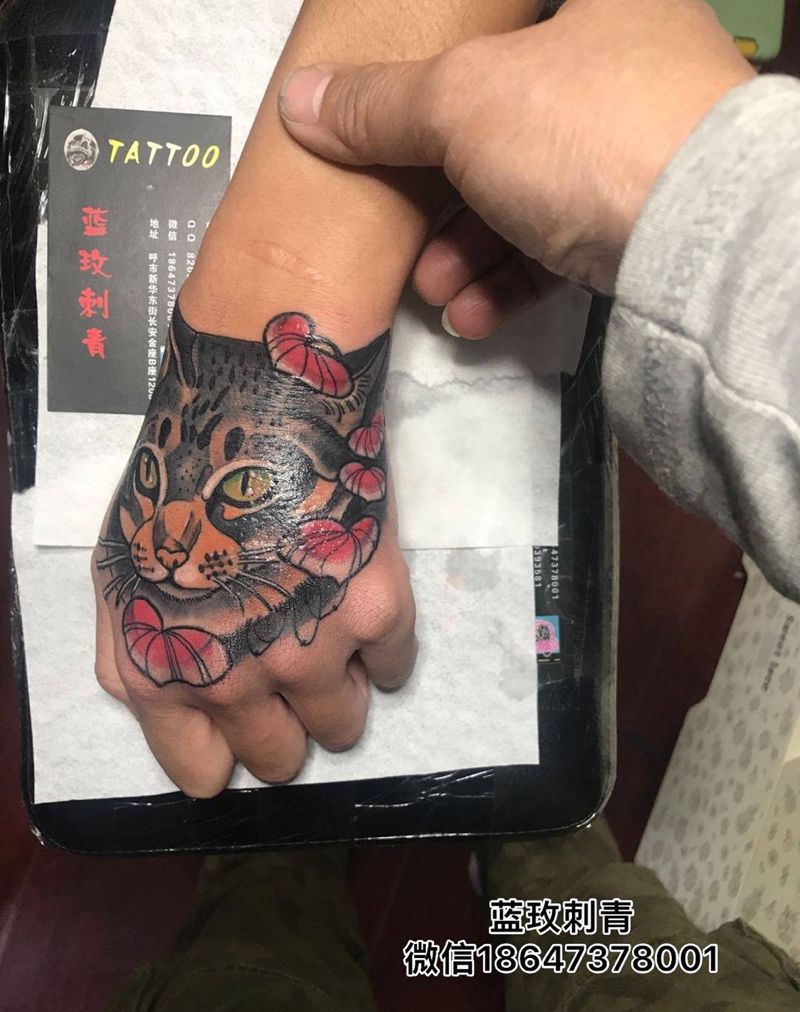• 手背潮流时尚的玫瑰花眼睛纹身图案