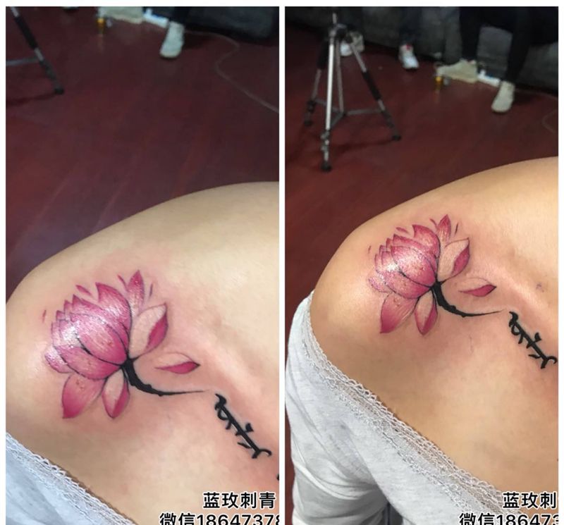 一组15张莲花纹身手