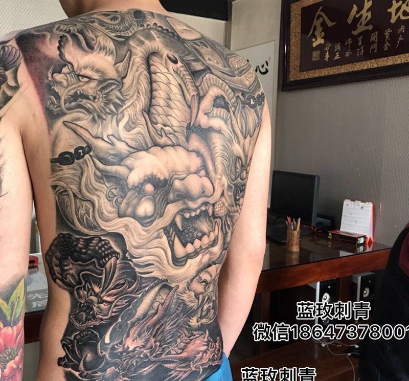 当前位置: 首页 >内蒙古呼和浩特市纹身店-蓝玫刺青纹身图案>九龙拉棺纹身图片