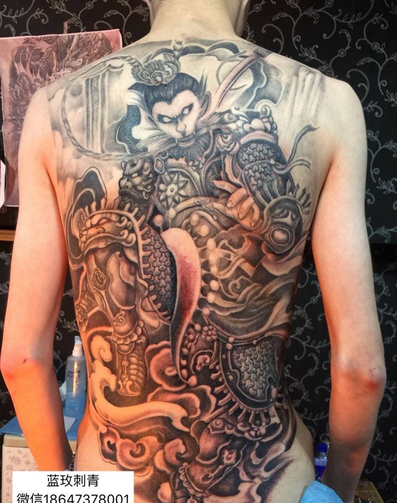 当前位置: 首页 >内蒙古呼和浩特市纹身店-蓝玫刺青纹身图案>满背斗战胜佛纹身图片