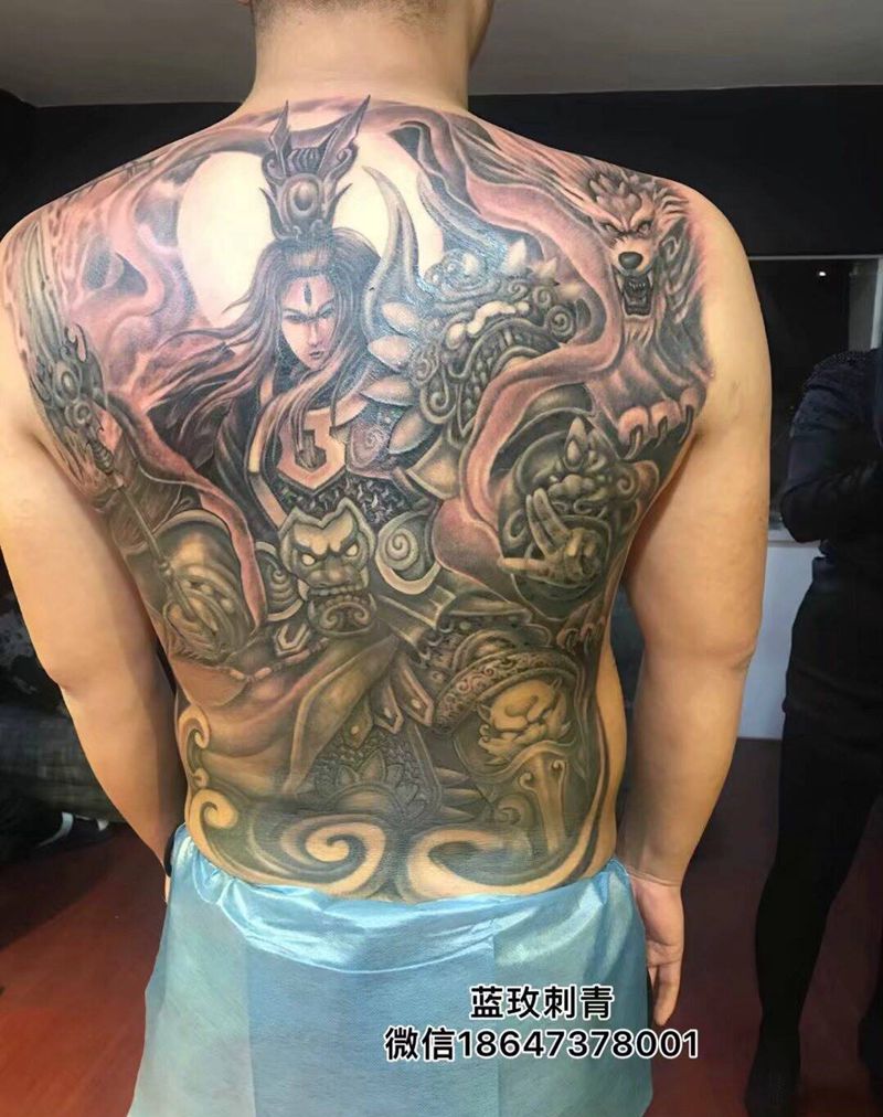 黑灰满背纹身图案