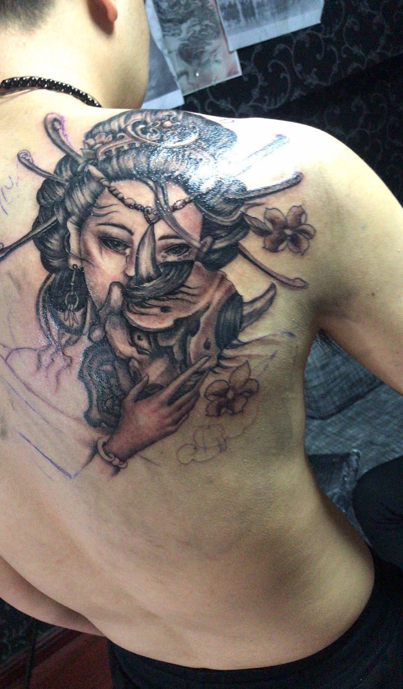 当前位置: 首页 >内蒙古呼和浩特市纹身店-蓝玫刺青纹身图案>艺妓纹身图片