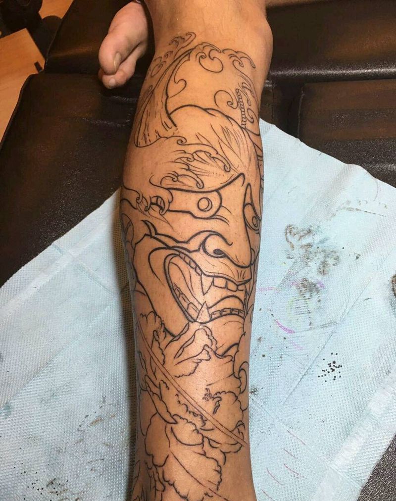 • T网红王老大花腿龙纹身图片_腿部新传统纹身图案