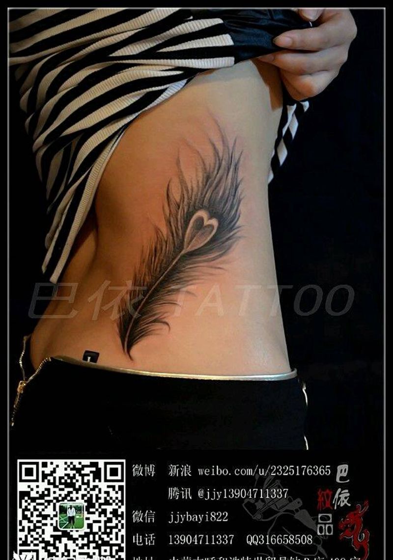 羽毛纹身图片_清新静物巴依纹身专业纹身纹身图案