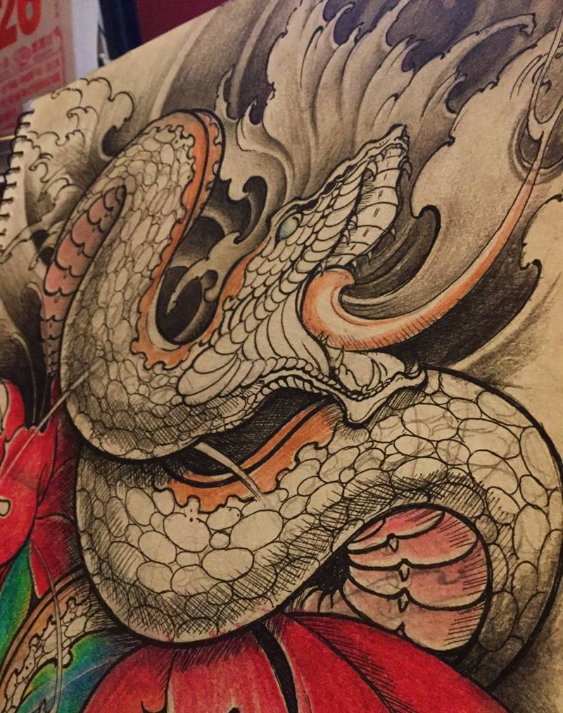 当前位置: 首页 >内蒙古呼和浩特市纹身店-巴依☆TATTOO纹身图案>原创蛇纹身图片_巴依内蒙古专业培训手稿成品传统纹身图案