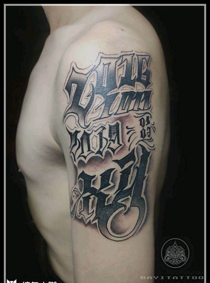 当前位置: 首页 >内蒙古呼和浩特市纹身店-巴依☆TATTOO纹身图案>原创→生日纪念纹身图片_手臂花体字奇卡诺生日纪念纹身图案